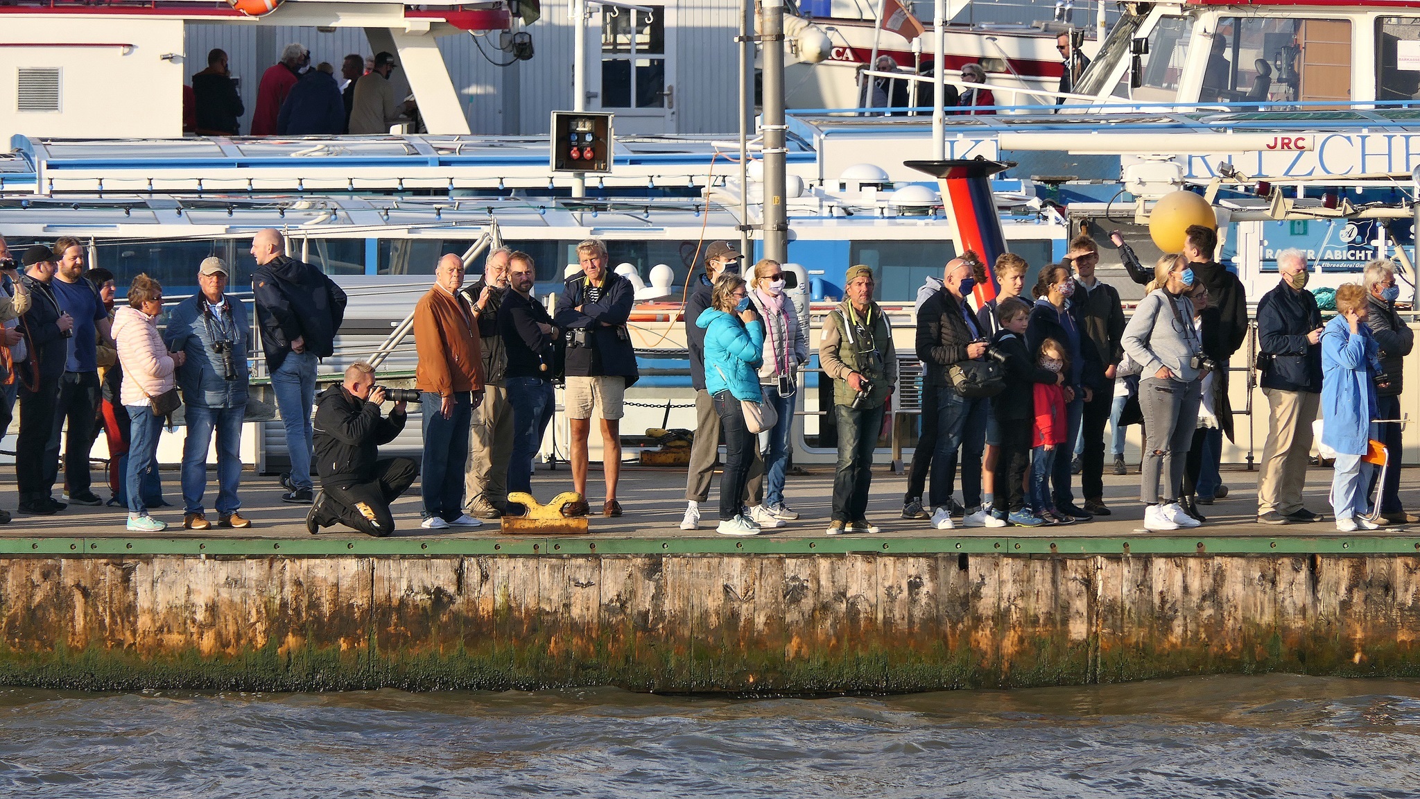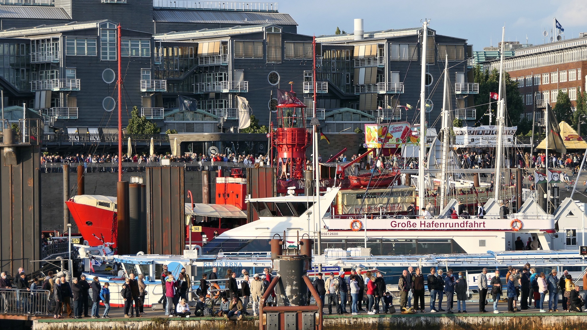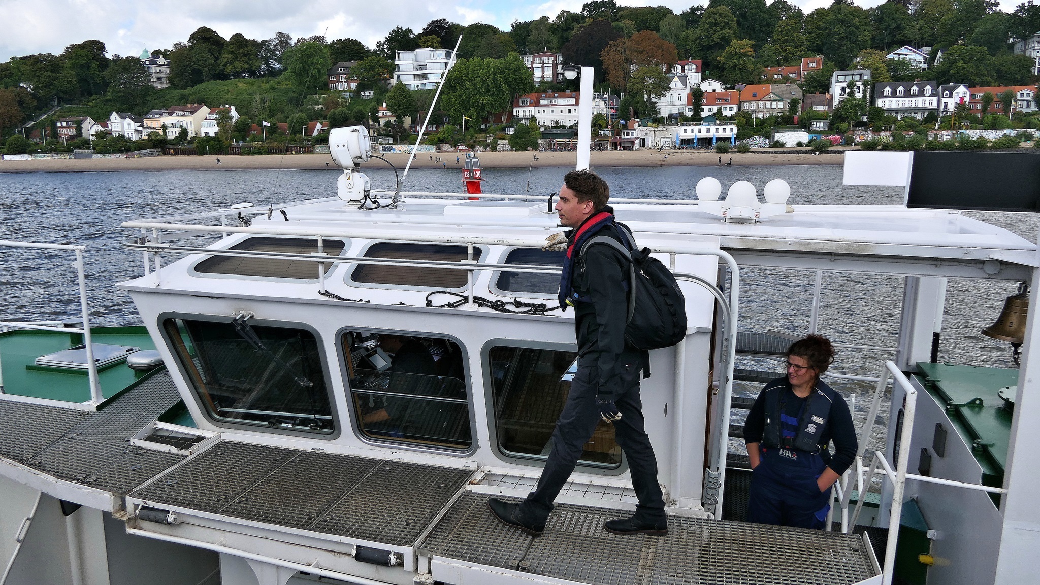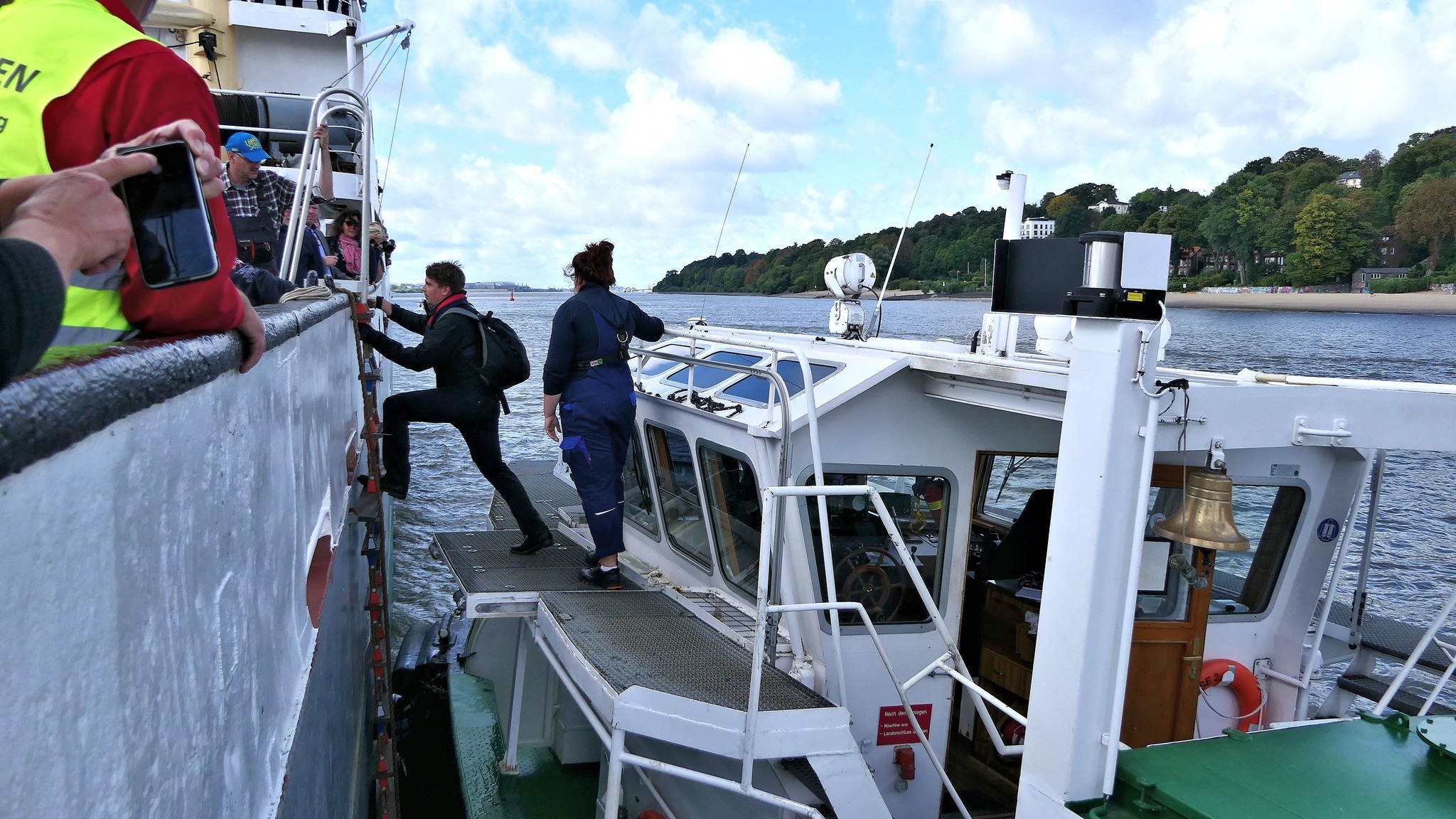 Wir warten auf die Barkasse zum Hansahafen