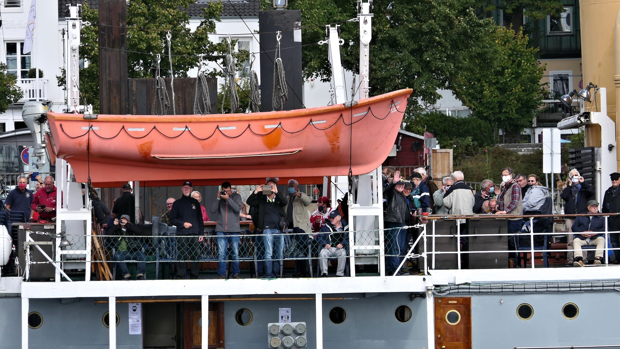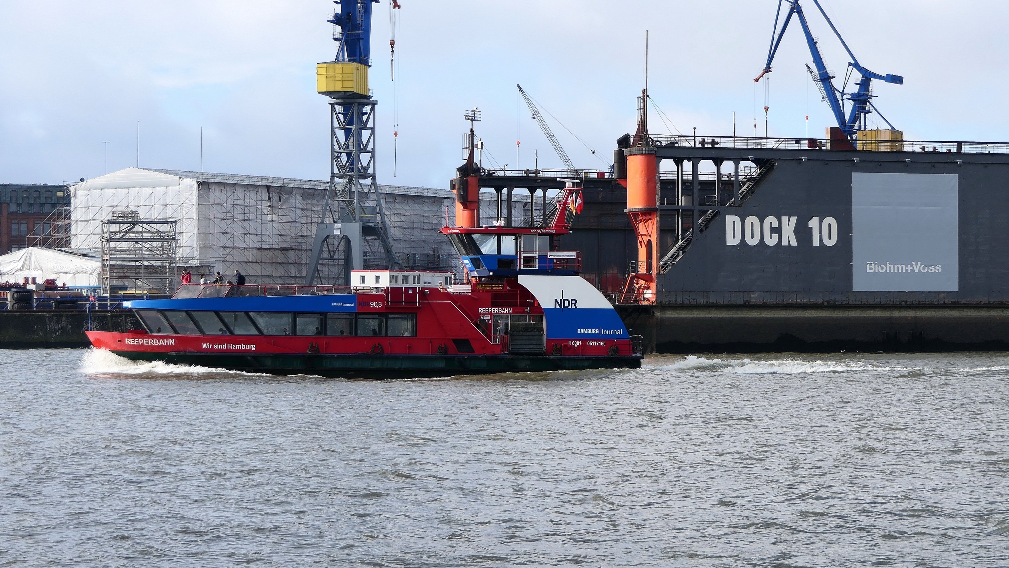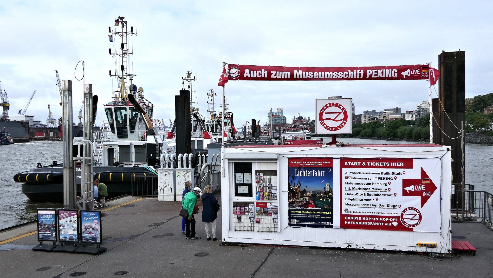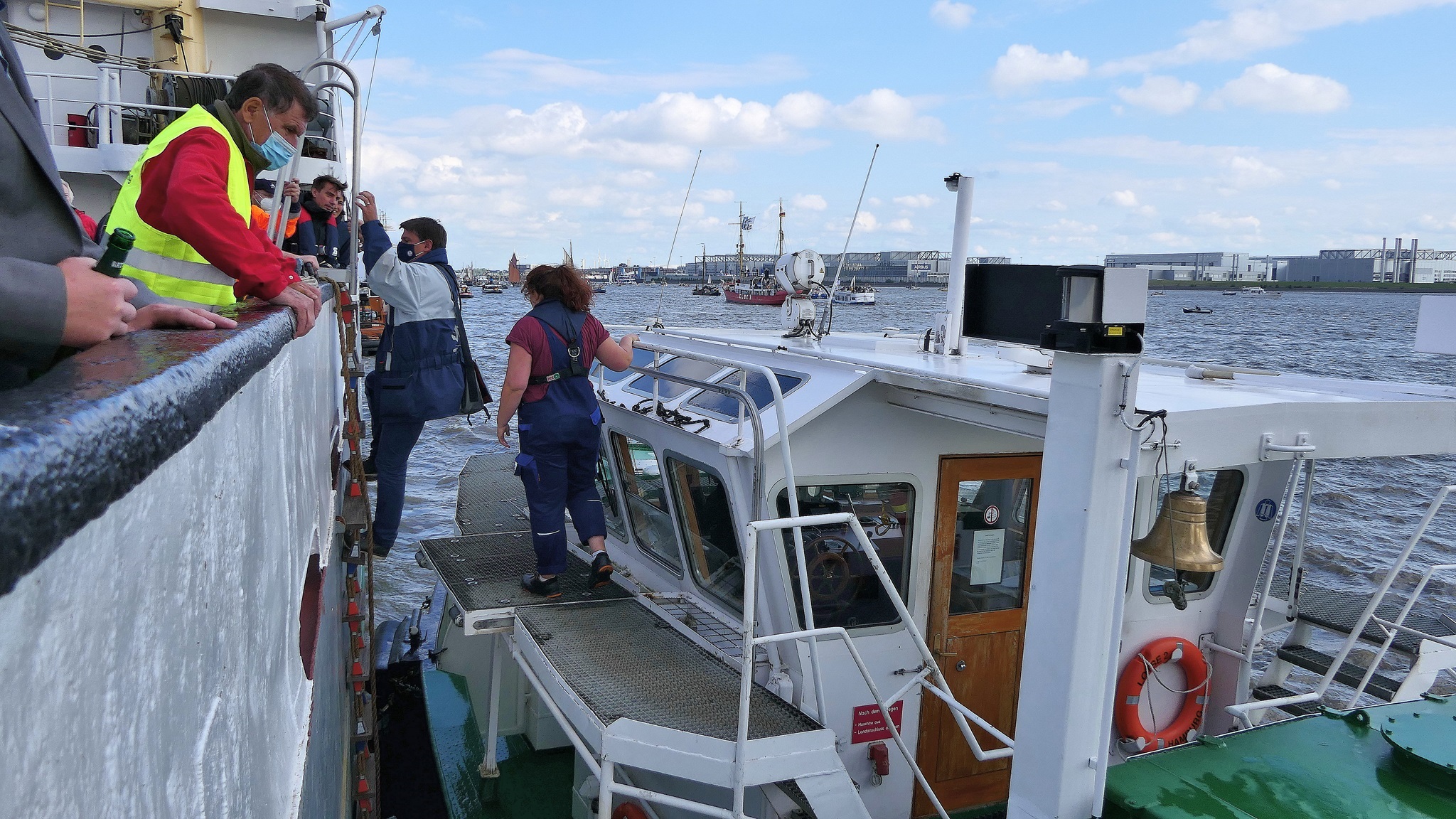 Wir warten auf die Barkasse zum Hansahafen