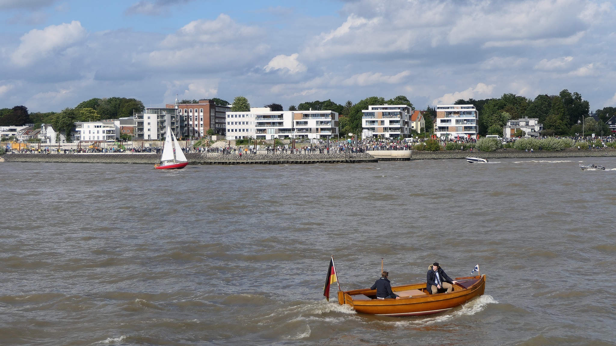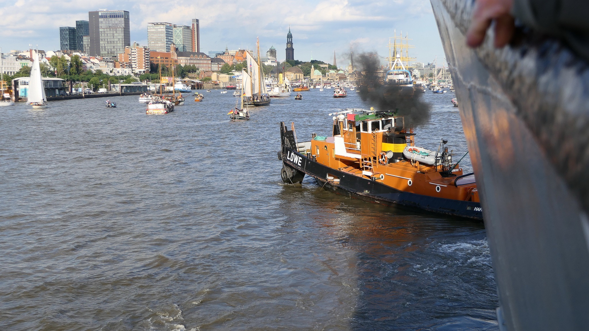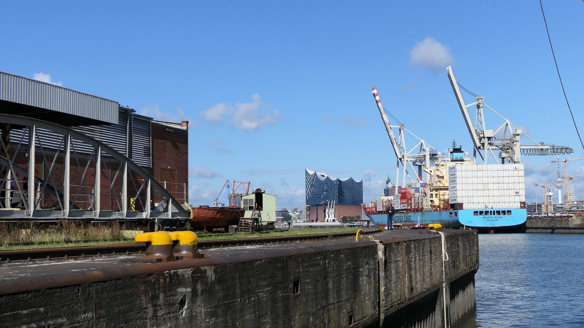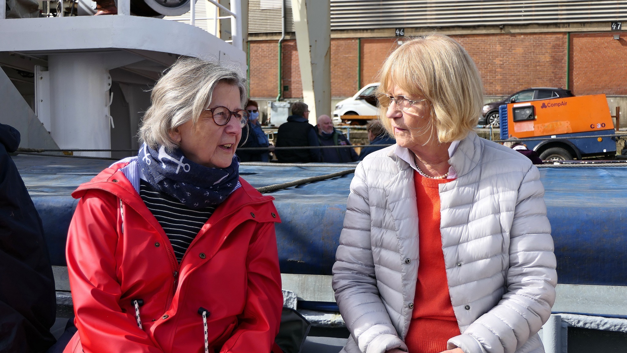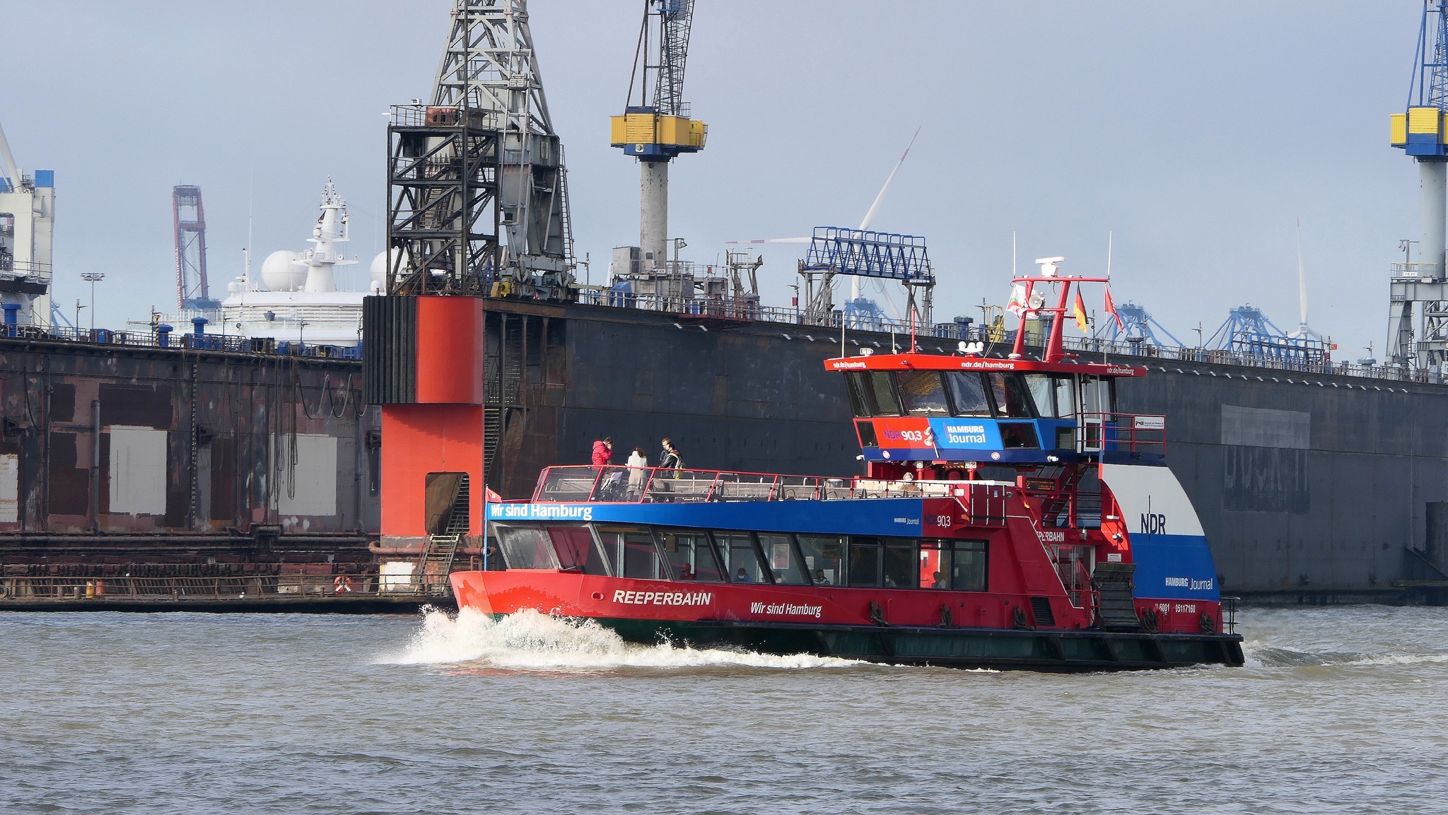 Wir warten auf die Barkasse zum Hansahafen
