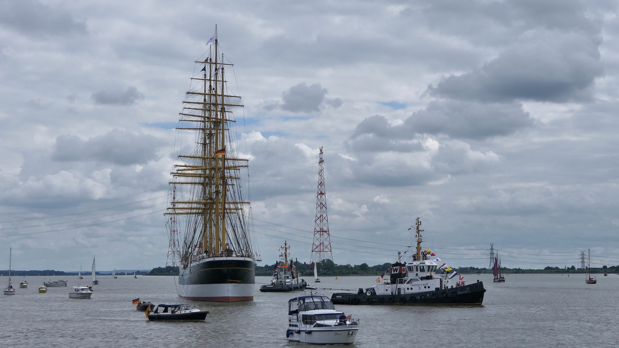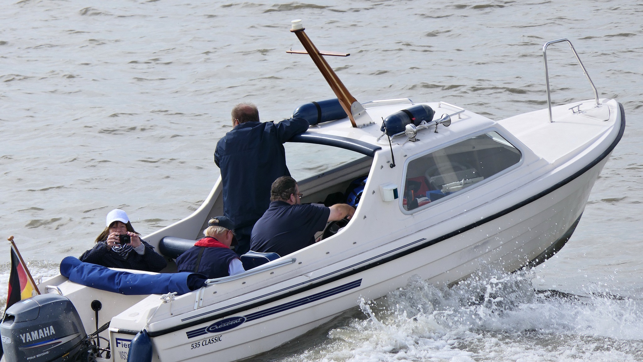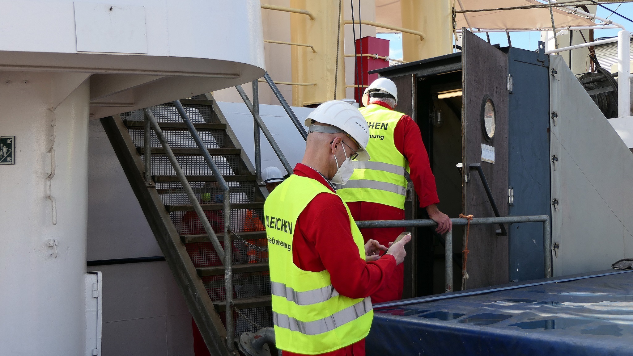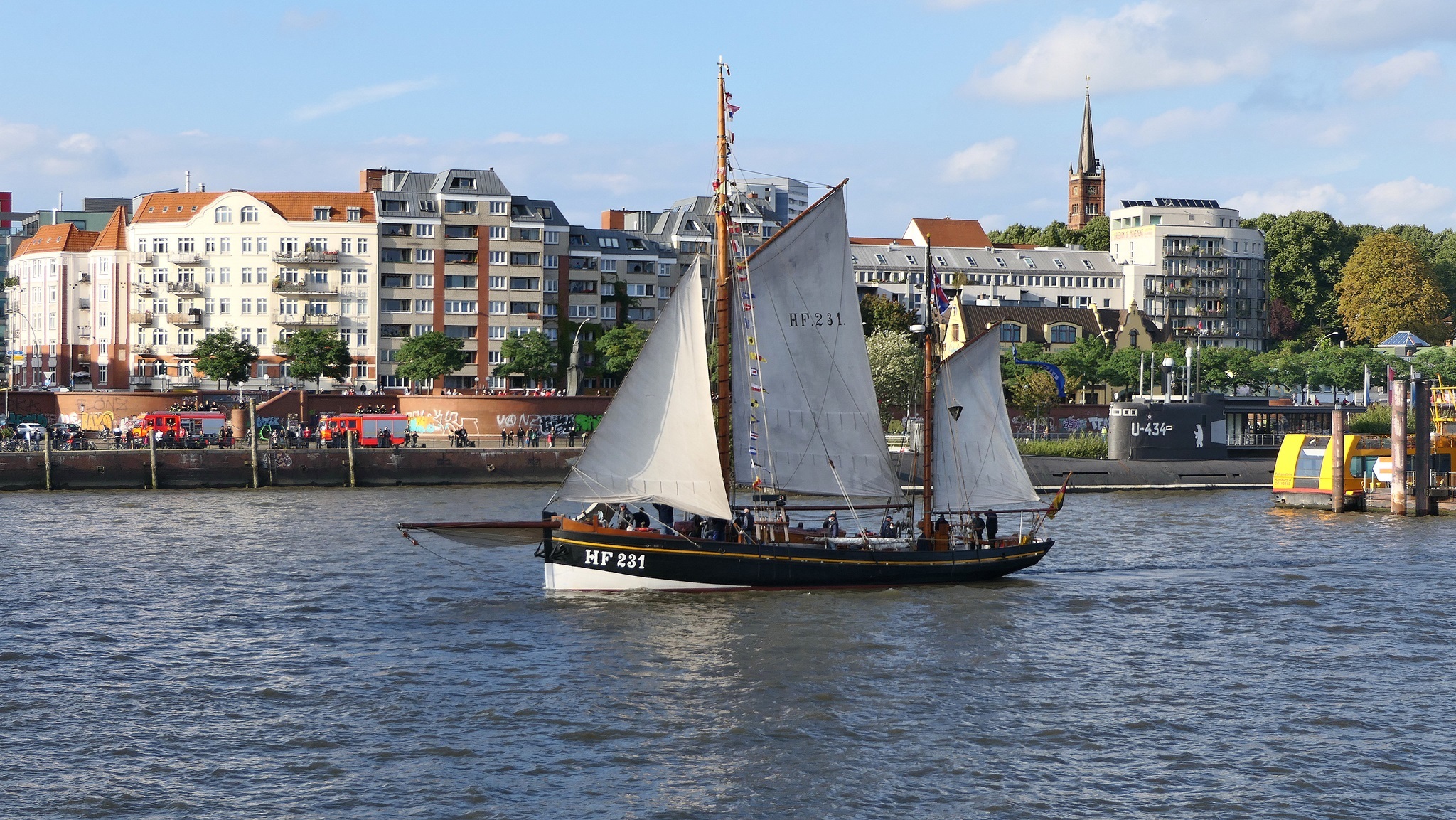 Wir warten auf die Barkasse zum Hansahafen