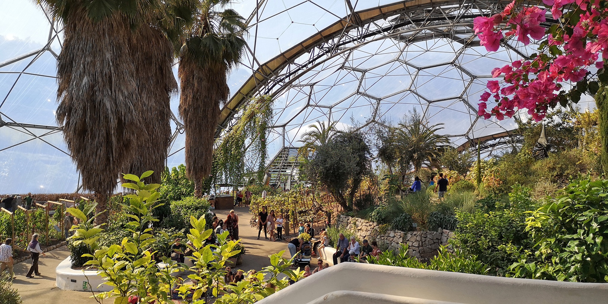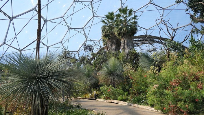 In den beiden "Gewächshäusern" des Komplexes (über 50m hoch, 125m Durchmesser) werden Klimazonen simuliert: tropisch-feucht (ca 40°) sowie subtropisch-trocken und mediterran.